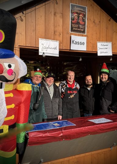 Fassbier, grüner Glühwein, Glühbirne (Birnensaft mit Gin), heiße Zitrone, Wildburger, Ossidöner, Knobibrot, Steak, Bratwurst, Baumschmuck zum selbstgestalten, Christbaum-Weitwurf mit Preisverleihung (sonntags)